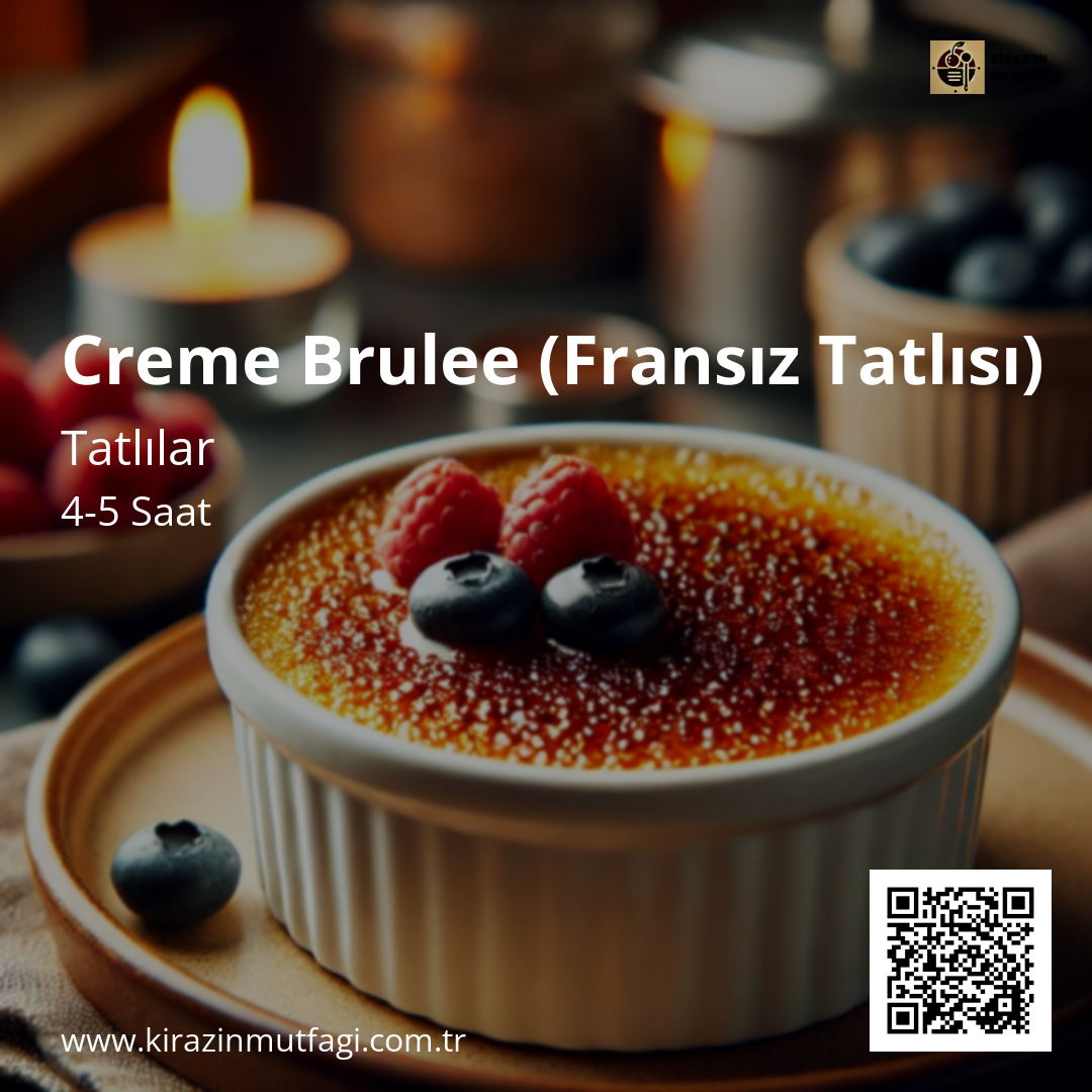🔥 İpucu: Crème Brûlée’nin üst kısmını tam kıtır yapmak için karamelize ettiğiniz şekerin tamamen sertleşmesini bekleyin!
